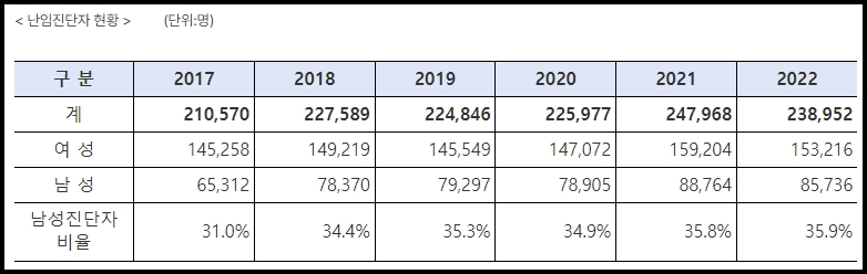 국민건강보험공단이 집계한 2022년 난임 진단자는 23.9만 명에 이른다고 합니다.