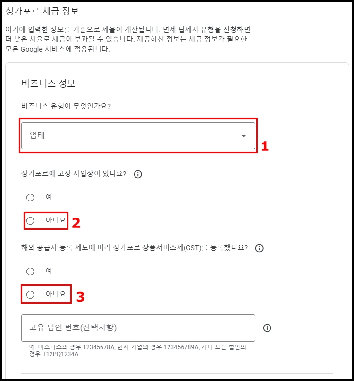 3. 해외 공급자 등록 제도에 따라 싱가포르 상품서비스 세(GST)를 등록했나요? => 아니요