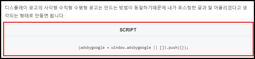 이제 블로그 글 작성할때 넣어주기만 하면 구글 애드센스 수동광고는 완벽하게 완성됩니다.