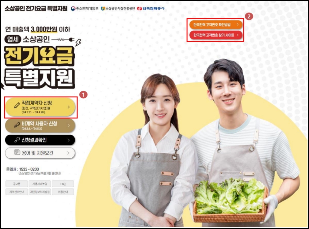 2. 신청방법 : 온라인 신청을 원칙으로 하며 포털사이트에서 “소상공인 전기요금 특별지원” 검색 또는 주소창에 “소상공인전기요금특별지원. kr” 입력하면 접속 가능