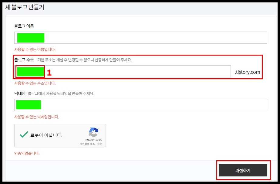 여기서 2차 도메인의 7777777 은 티스토리 블로그 만들 때 입력한 블로그 주소입니다.