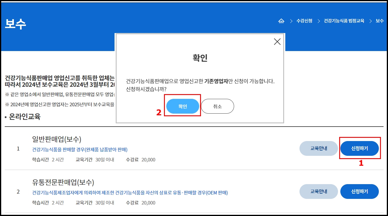 여기서는 일반판매업 보수교육 진행절차에 대해서 알아보도록 하겠습니다.