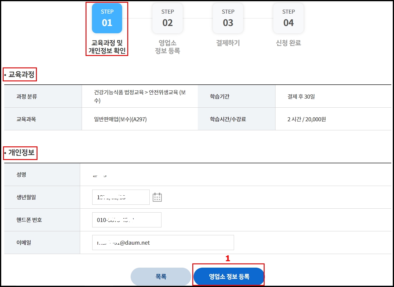 STEP1 교육과정 및 개인정보 확인