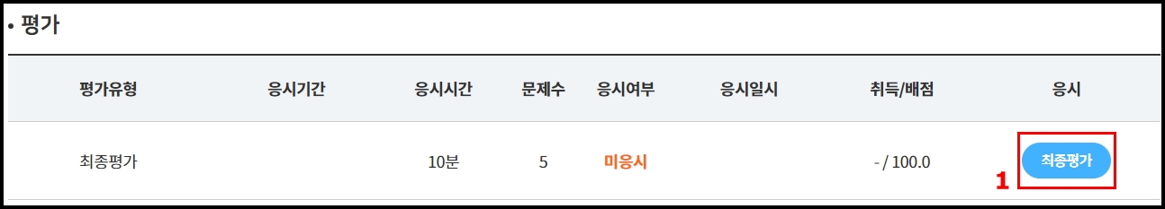 1. 최종평가 클릭 후 각 문항별 정답을 체크하시면 됩니다.