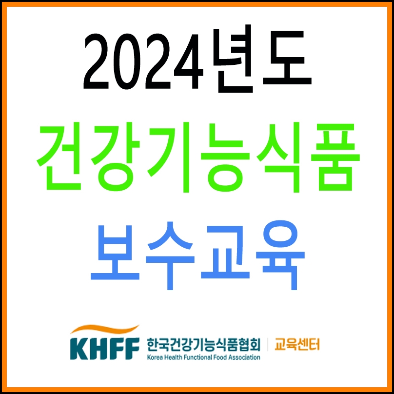 한국건강기능식품협회에서 주관하는 24년도 건강기능식품판매업 보수교육 개설이 되었다고 안내를 받았습니다. 1. 교육대상 : 건강기능식품판매업 영업자(일반판매업, 유통전문판매업) 2. 교육