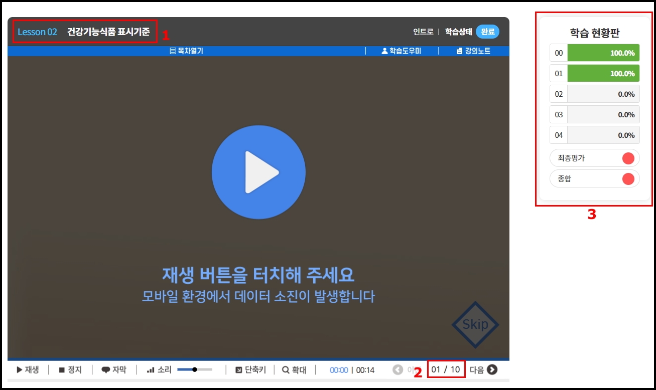 1. 레슨번호 "02" 건강기능식품 표시기준에 대한 온라인 강의입니다.