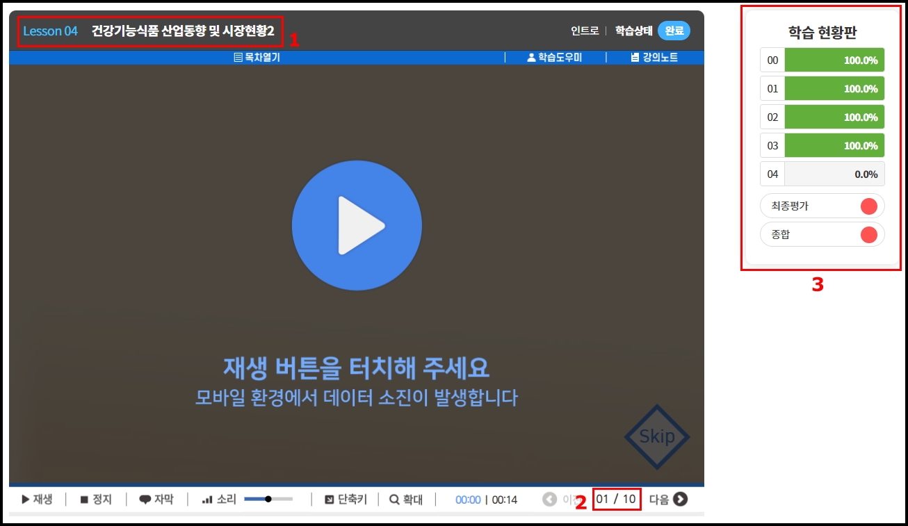 1. 레슨번호 "04" 건강기능식품 산업동향 및 시장현황 2에 대한 온라인 강의입니다.